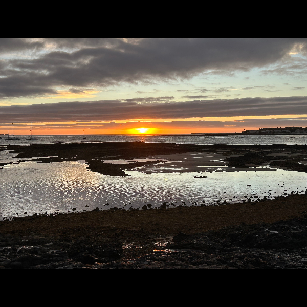As I turn and look towards the horizon there are a couple of flame coloured streaks along the horizon. It definitely feels warm now and for the first time since starting these walks I consider taking off my lightweight jacket , I don’t. The warmth is nice. I stop on the blue slatted bench and meditate with my eyes open soft focusing on the seascape. There is a bird that makes a kind of laughing noise. I will see if I can google it. Colours are spreading across the sea now, it’s magical. I wonder when was the last time president Trump stood and watched a sunrise . It makes you feel so small, a blip in Mother Nature. Hmm.