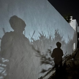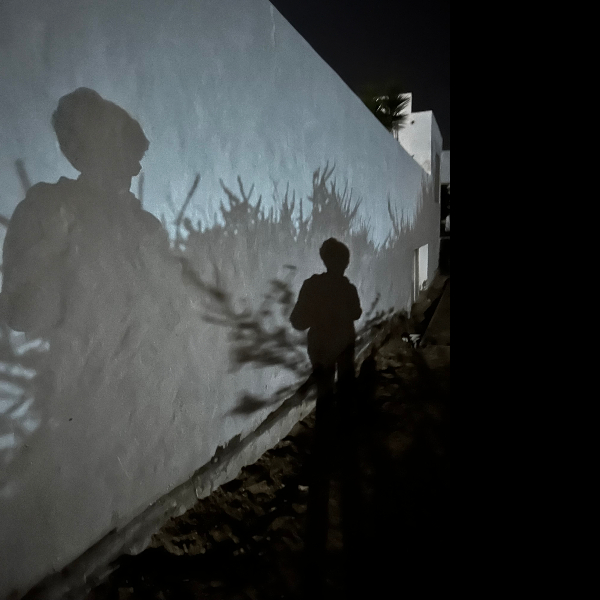 It’s really dark , no pink horizon no light in the sky at all, I wonder if that means it’s going to be bad weather. As I walk along a sandy stretch of beach I catch sight of my shadow reflected twice on a white wall. It doesn’t look 74. ( smile).