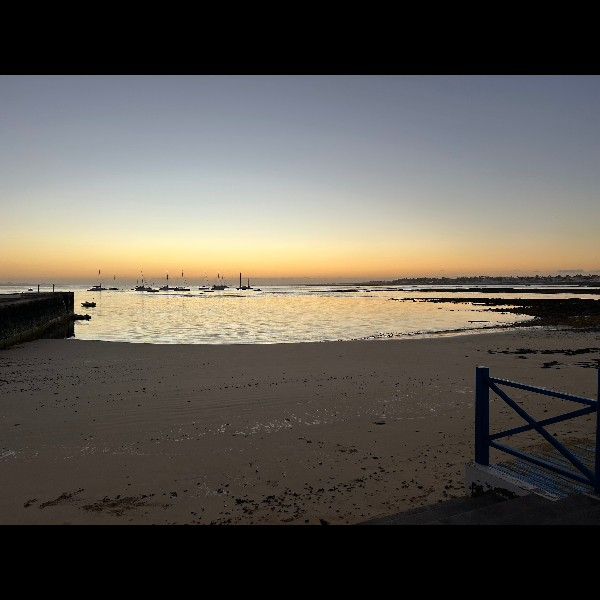For the first time on my walks the sky is completely clear, there are stars . When I get to the port dawn is turning the skyline into a gentle pink, orange , yellow, prism colours. The lights from the boats playing on the water like Christmas glitter.