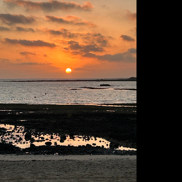 I get up and continue, by the time I have gone on for a couple of minutes the whole colour scheme has changed , the horizontal flash of fire on the horizon has completely disappeared , it’s magical like a performer doing a quick change in the wings during a performance. The rocks are a deep glistening jet black , the sea a warm light gray the horizon a very gentle warm pale yellow which almost imperceptibly seeps into reflections in the water and in the sand pools which in turn blend into the off white coral particles which are washed up on the shores here, it all contributes to the image of something that is perfectly turned out , immaculate. This spot is a favourite spot that I stop at every morning. The tide is out leaving the sand in wet ripples which catch the light individually. If all these colours were fabric for an outfit they have been perfectly selected, the outfit is impeccable. I think of Issey Miyake.